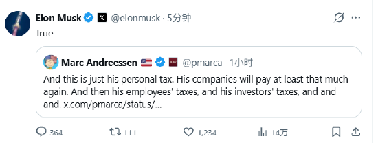 风投大佬马克·安德森回应称:“埃隆一如既往地谦虚。实际数字可能接近5万亿美元,甚至更高。”