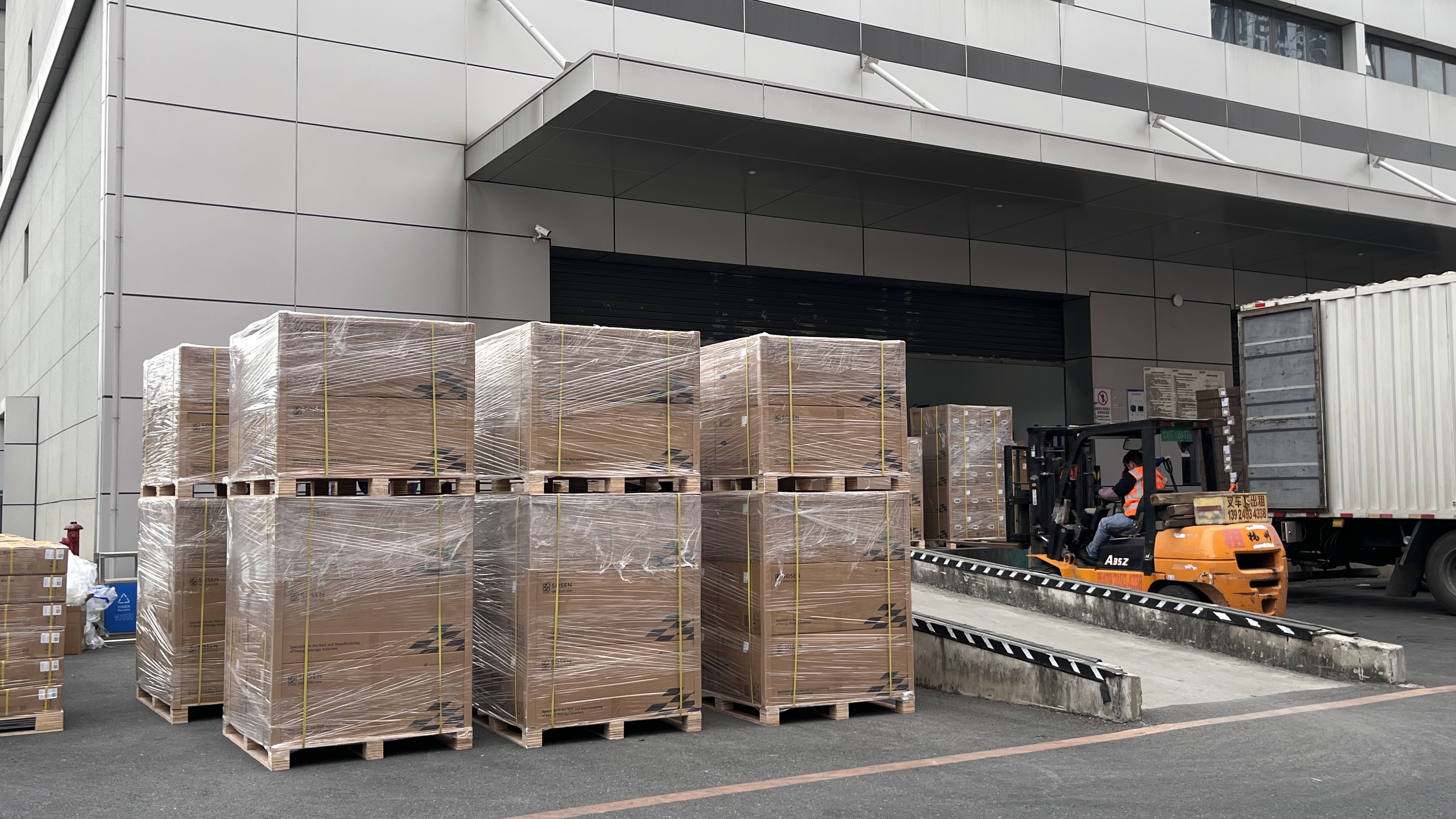界面《硬科技头条》记者在崧盛股份的中山产线上观察到,即便是周末,大量工人正在紧锣密鼓地组装生产交付中,储能设备在贴上客户的LOGO后,发往全球各地。