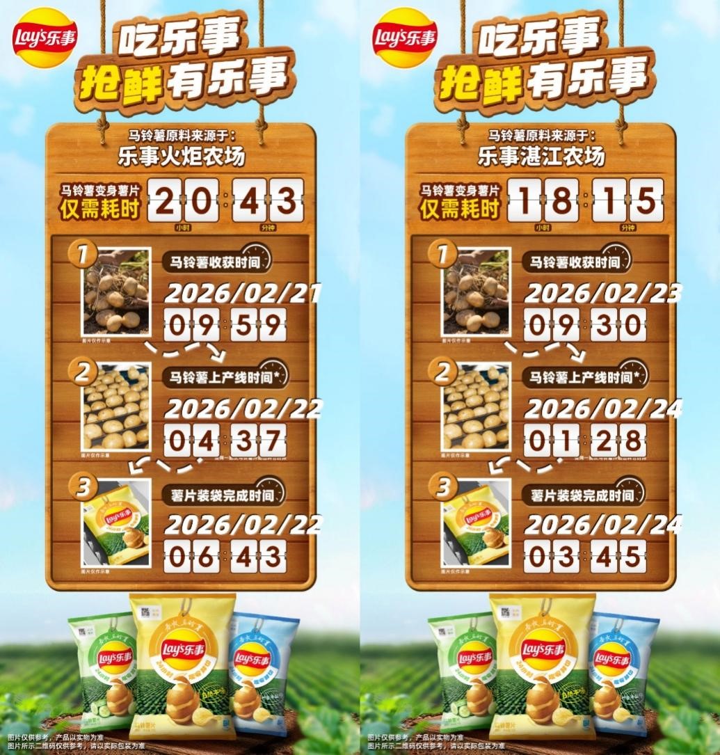 其次是后端的供应链实力。从马铃薯采收到制作成薯片成袋,整个过程被压缩在24小时之内。这一时间设定不仅是一个卖点,也是一种对供应链能力的展示——从百事集团自有湛江农场的原料供给,到佛山工厂生产端的快速协同,时间被具体化为“新鲜”的衡量标准。行业内几乎只有乐事和百事集团这样具有雄厚规模的公司能做到这一点。